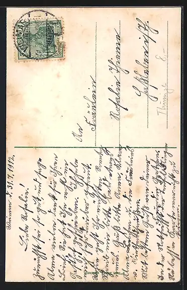 alte Ansichtskarte, gelaufen 1912, Briefmarke entfernt, Eckknick re. oben, guter Zustand