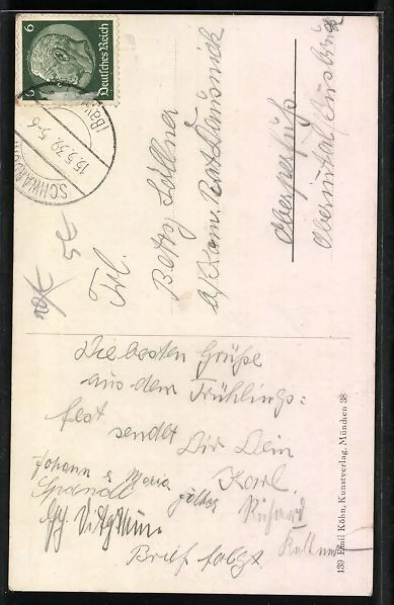 alte Ansichtskarte, gelaufen 1939, Bugspur re. oben, guter Zustand