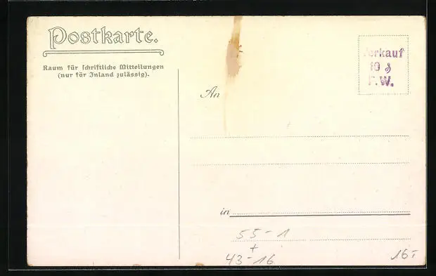 alte Ansichtskarte, ungelaufen, rückseitig Oberflächenschaden, guter Zustand
