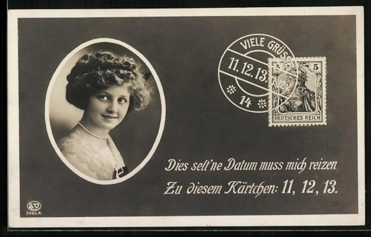 AK Grusskarte vom 11.12.1913, Portrait junge Frau, Datumsstempel