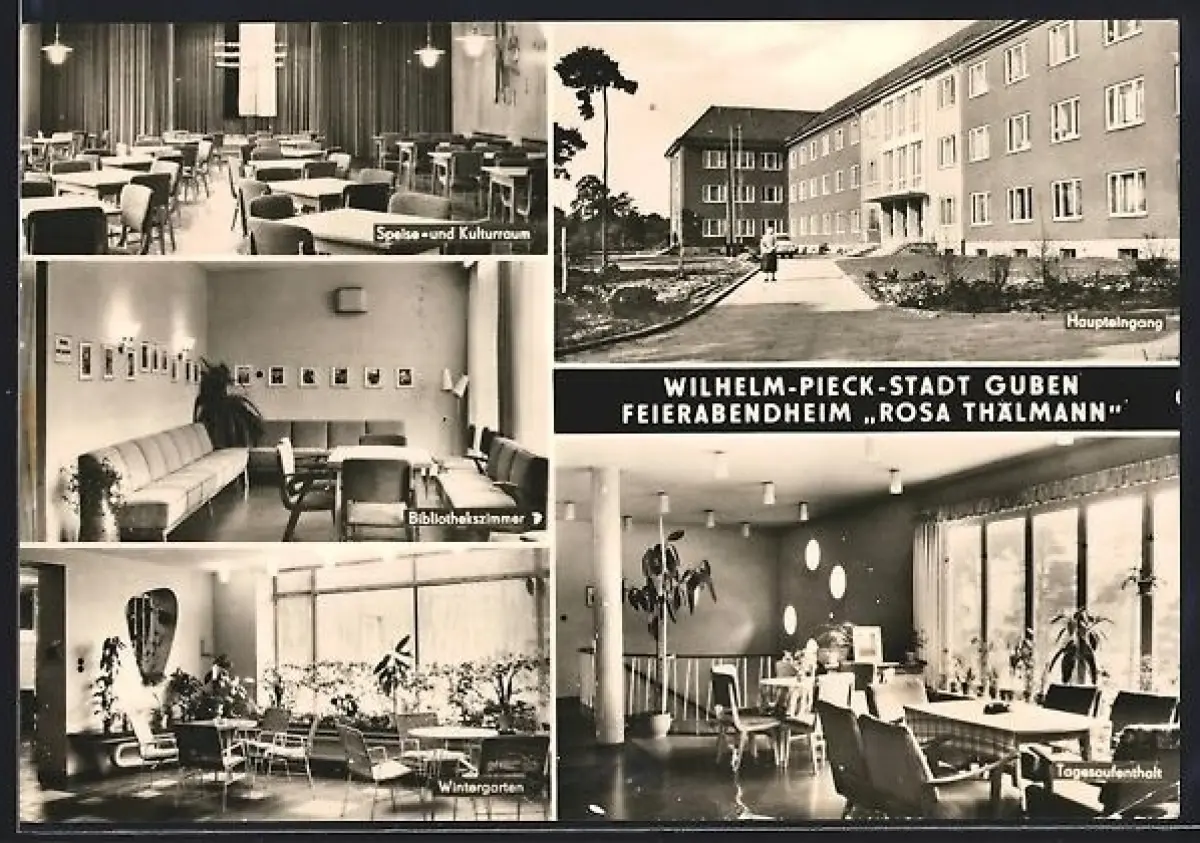 AK Guben, Feierabendheim Rosa Thälmann, Wintergarten, Bibliothekszimmer