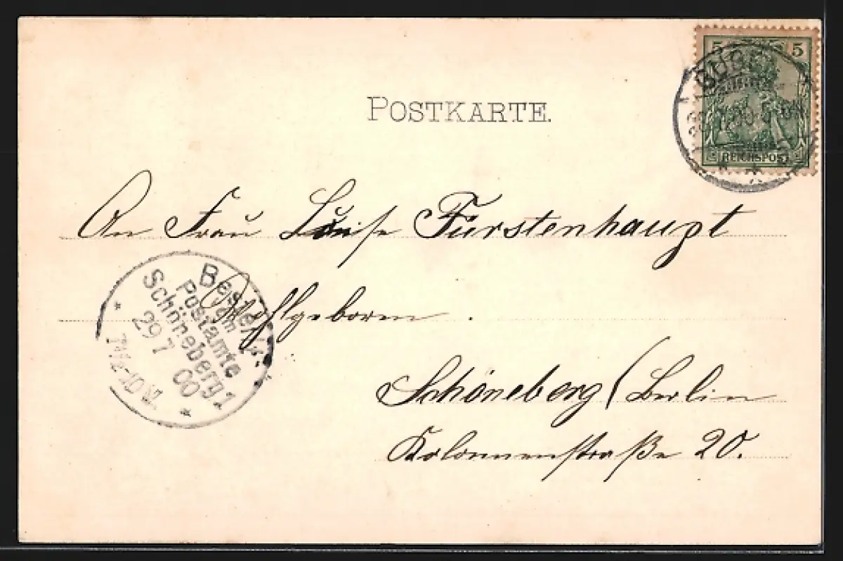 alte Ansichtskarte, gelaufen 1900, guter Zustand