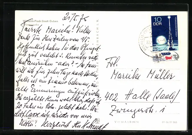 alte Ansichtskarte, gelaufen 1975, Bugspur mittig, guter Zustand