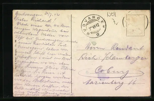 alte Ansichtskarte, gelaufen 1912, guter Zustand