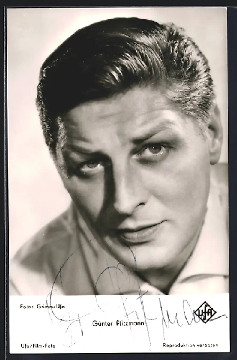 AK Günter Pfitzmann mit ernstem Blick, Autograph
