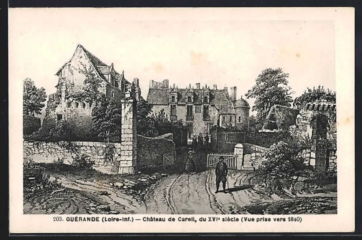 AK Guérande /Loire-Inf., Château de Careil, du XVIe siècle, Vue prise vers 1840