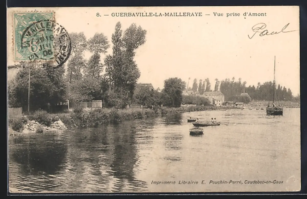 AK Guerbaville-la-Mailleraye, Vue prise d`amont avec bateaux sur la rivière
