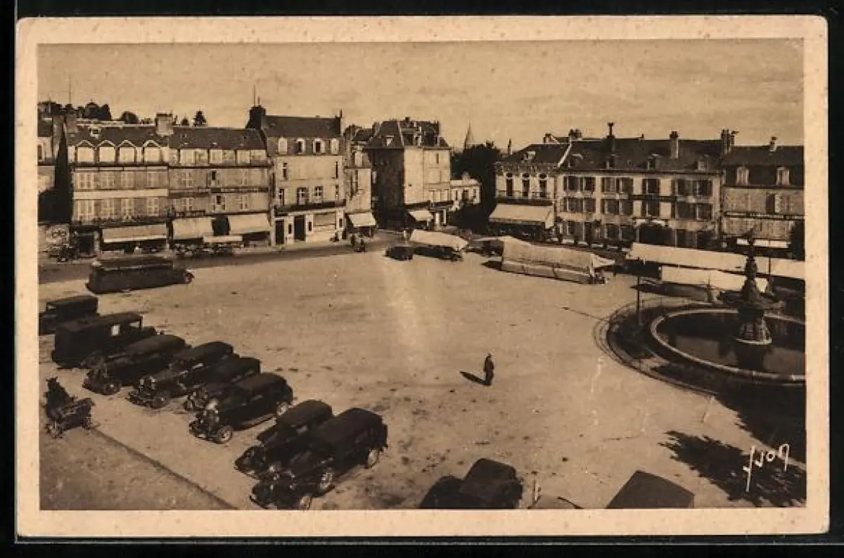 AK Guéret /Creuse, Place Bonnyaud avec voitures et fontaine