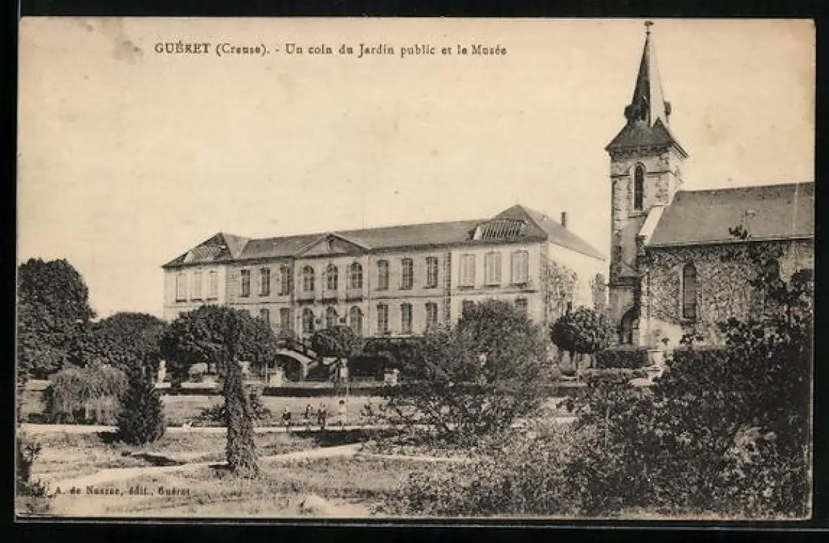 AK Guéret /Creuse, Un coin du Jardin public et le Musée