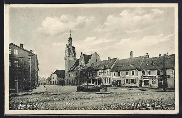 AK Güsten / Anhalt, Marktplatz mit Rathaus