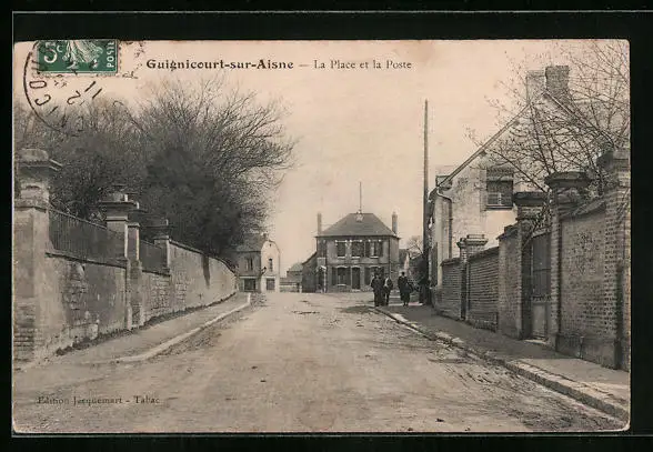 AK Guignicourt-sur-Aisne, La Place et la Poste