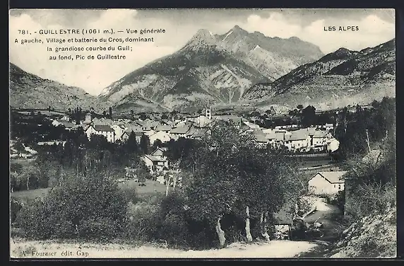 AK Guillestre /Alpes, Vue generale, A gauche Village et batterie du Cros