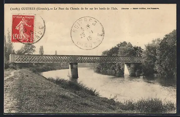 AK Guîtres, Le Pont du Chemin de fer sur les bords de l`Isle