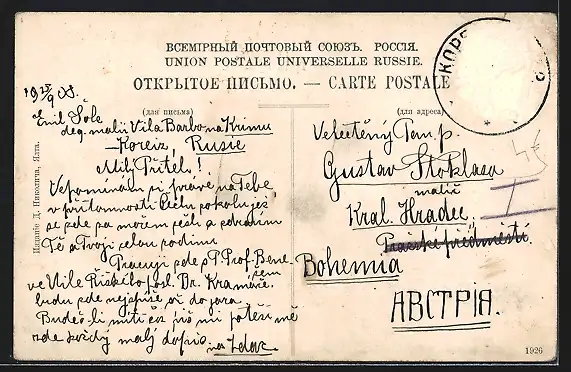 gelaufen 1905, Briefmarke entfernt mit rückseitig Oberflächenschaden & Eckknick, sonst guter Zustand