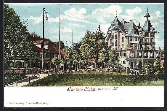 AK Gurten-Kulm, Partie am Hotel Gurten-Kulm, Gäste im Garten, um 1900
