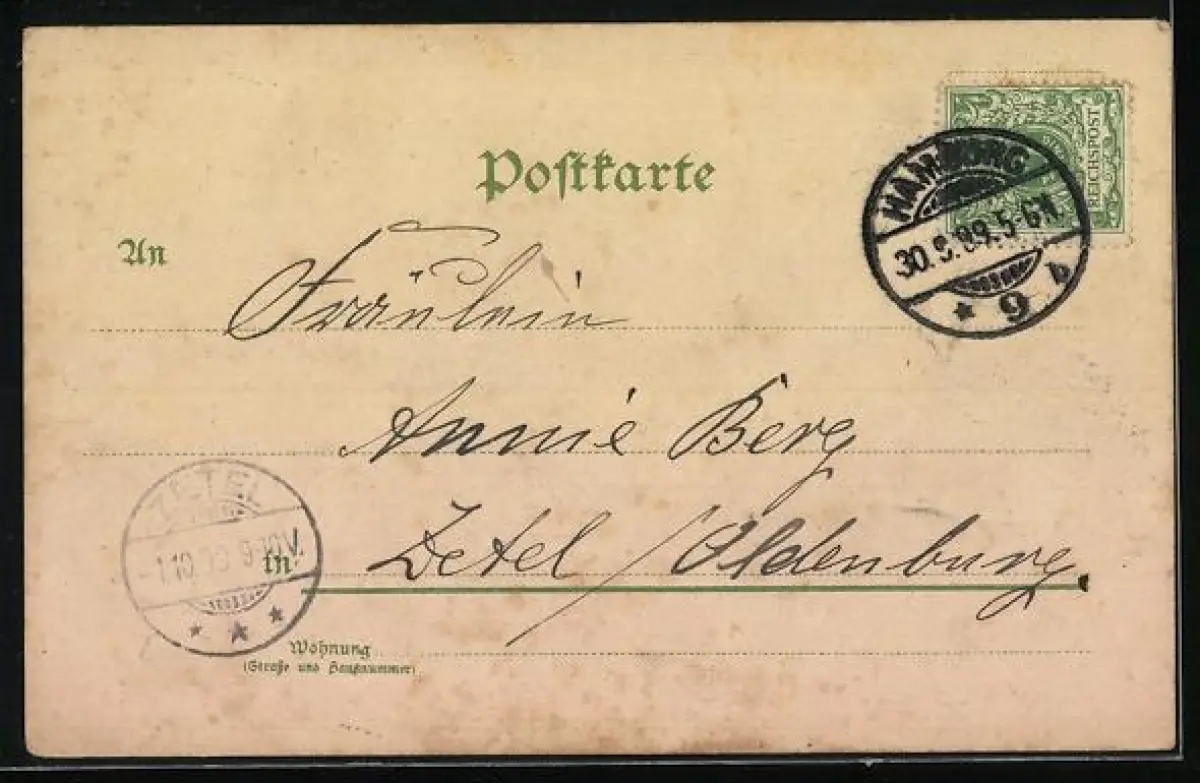 alte Ansichtskarte, gelaufen 1899, guter Zustand
