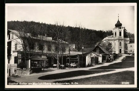 AK Gutenstein, Gasthof Galler am Mariahilfberg mit Kirche