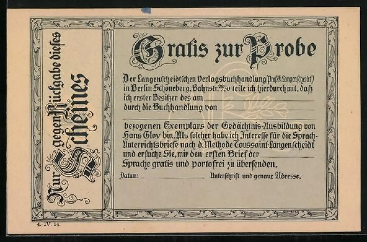 AK Gutschein zur Probe der Sprachunterrichtsbriefe der Langenscheidtschen Verlagsbuchhandlung