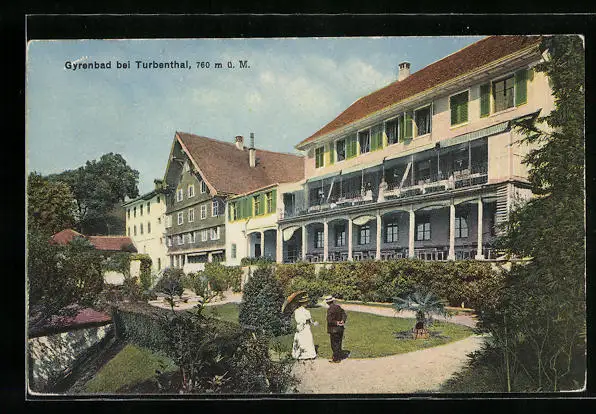 AK Gyrenbad bei Turbenthal, Blick in den Garten eines Hotels