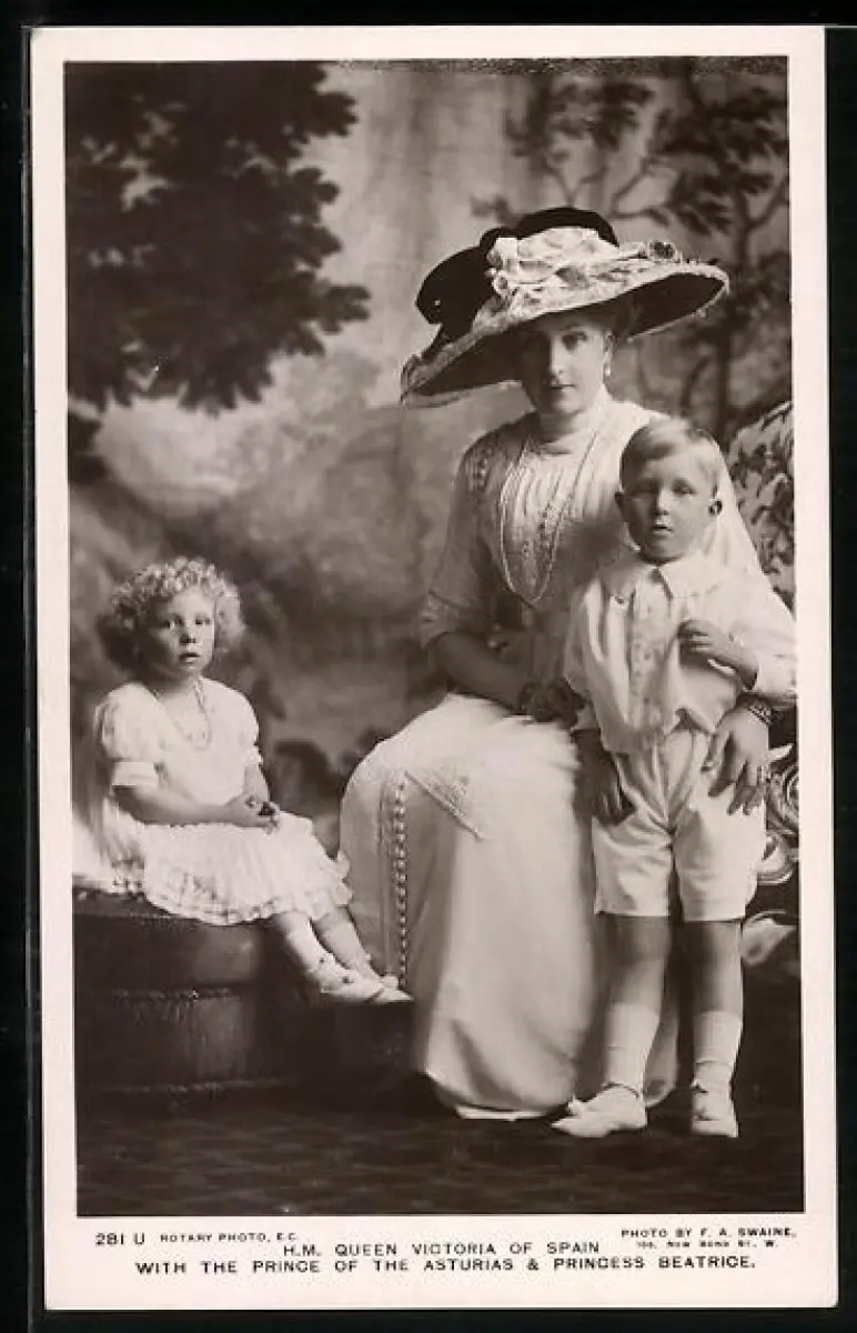 AK H. M. Queen Victoria of Spain with the Prince of the Asturias & Princess Beatrice