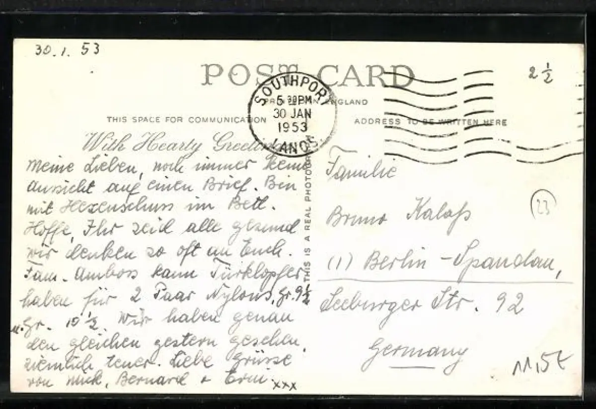 alte Ansichtskarte, gelaufen 1953, Briefmarke entfernt, guter Zustand
