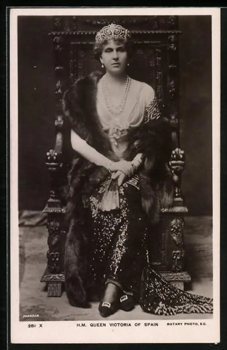 AK H.M. Queen Victoria of Spain sit on the Throne