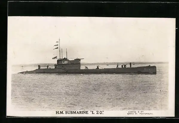 AK H.M. Submarine L 20, U-Boot mit Besatzung an Deck