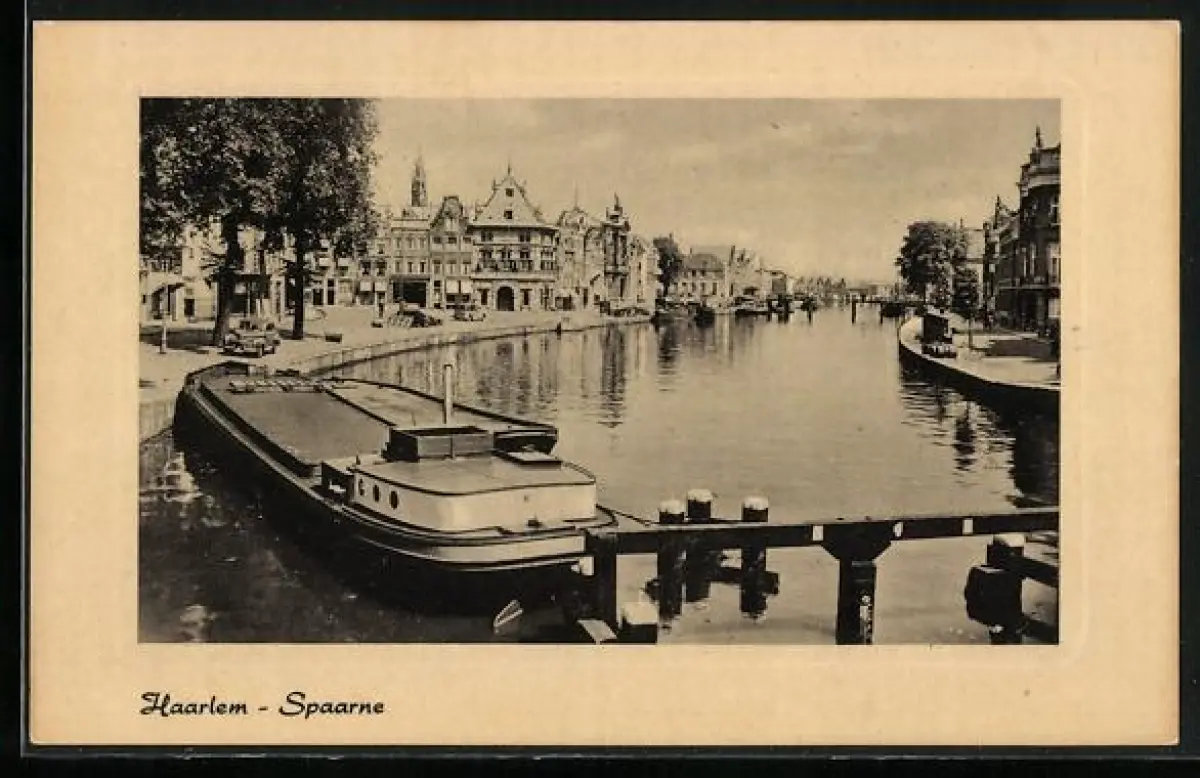 AK Haarlem-Spaarne, Flusspartie mit Uferpromenade