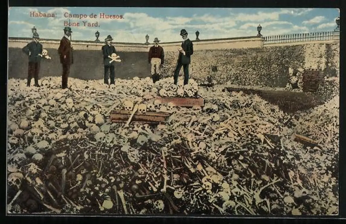 AK Habana, Campo de Huesos, Männer in einem Berg von Skeletten