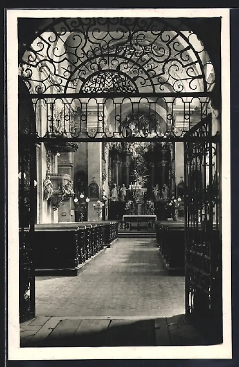 AK Hadersdorf-Weidlingau a. d. Westbahn, Inneres der Wallfahrtskirche Mariabrunn mit Gitter