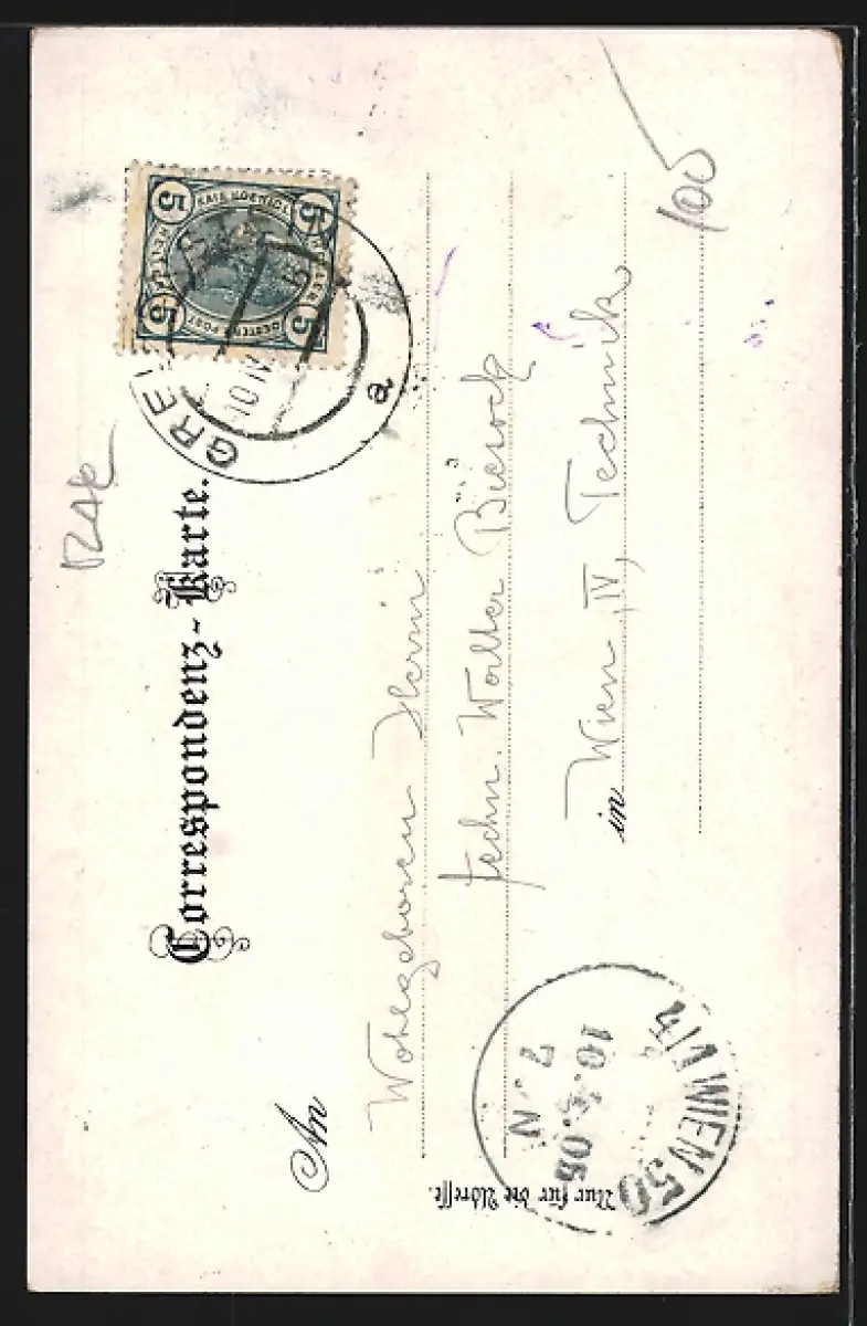 alte Ansichtskarte, gelaufen 1905, Stempelspur, guter Zustand