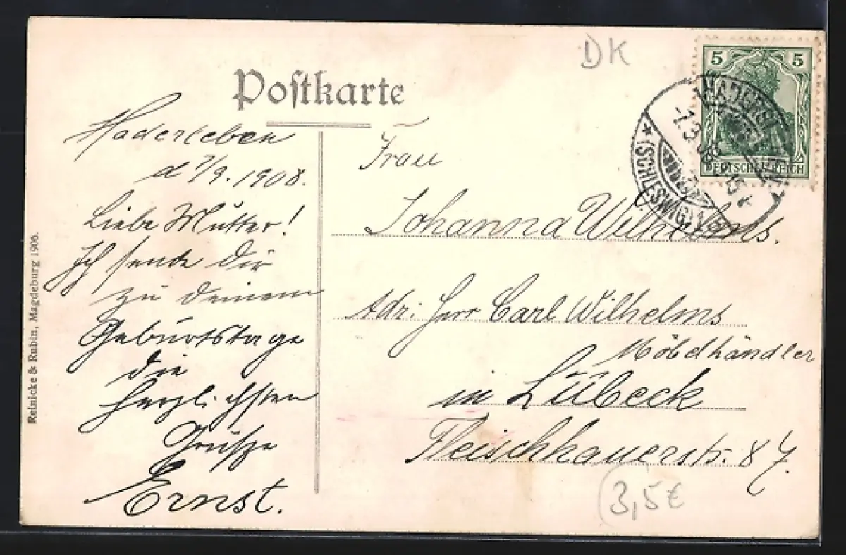 alte Ansichtskarte, gelaufen 1908, guter Zustand