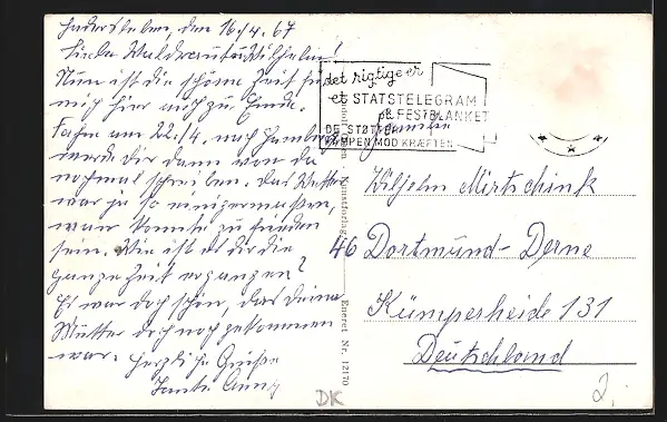alte Ansichtskarte, gelaufen 1967, Briefmarke entfernt, guter Zustand