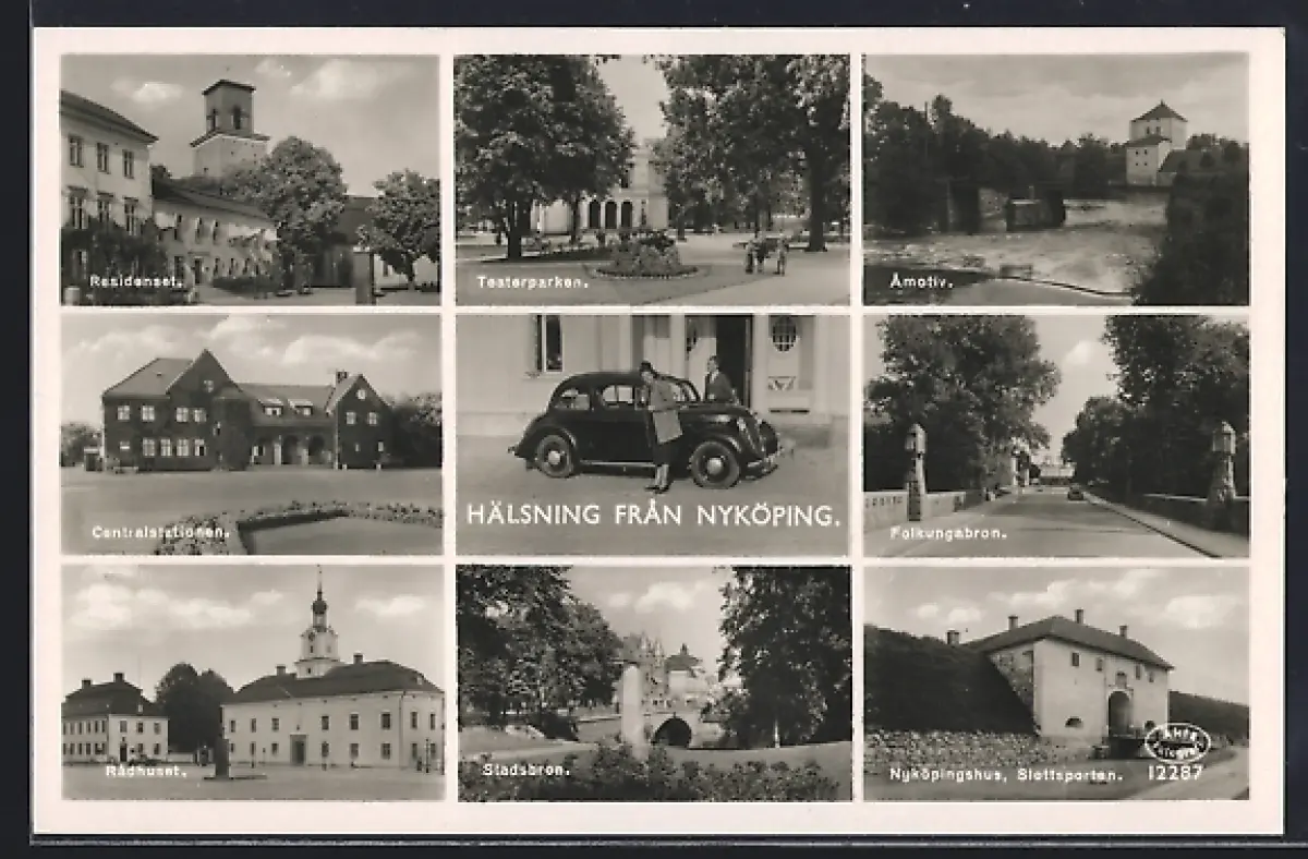 AK Hälsning, Radhuset fran Nyköping, Teaterparken, Stadsbron