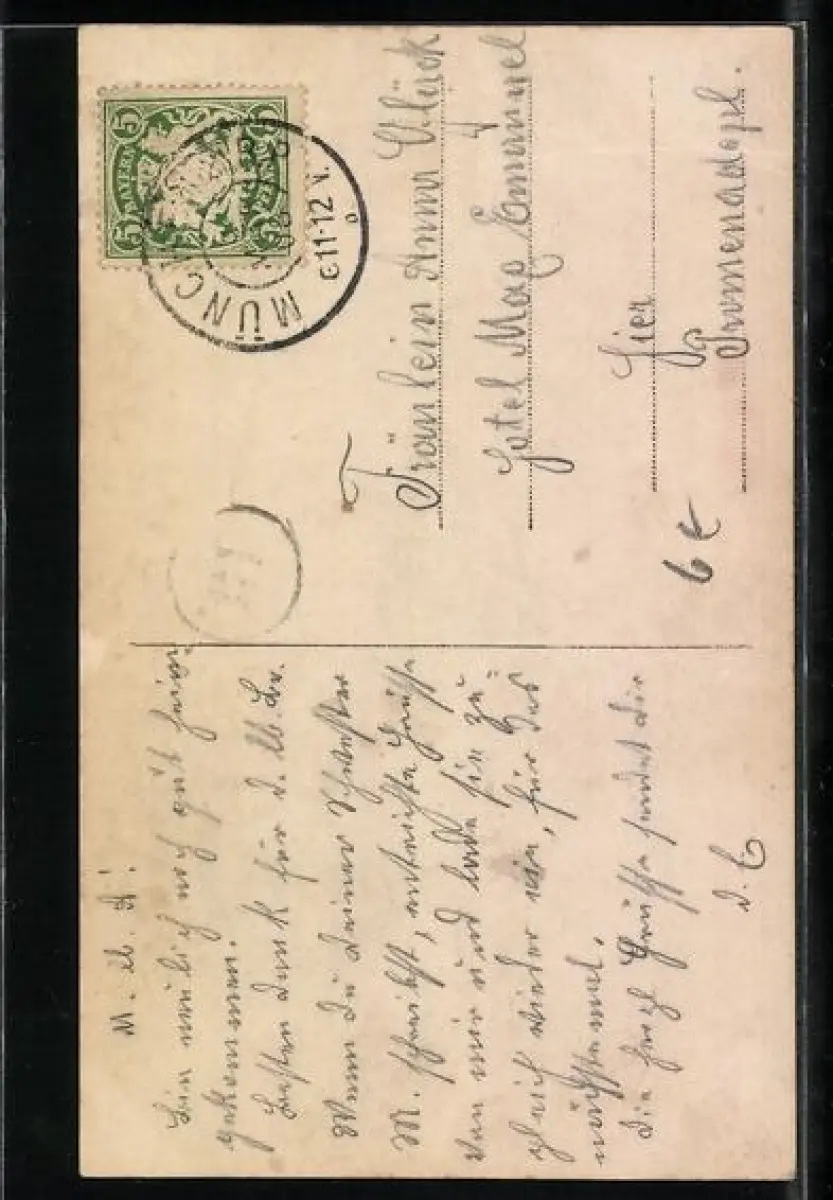alte Ansichtskarte, gelaufen 1908, vorderseitig Klebe- und Papierreste, rückseitig Oberflächenschaden, Bugspur li. oben, guter Zustand