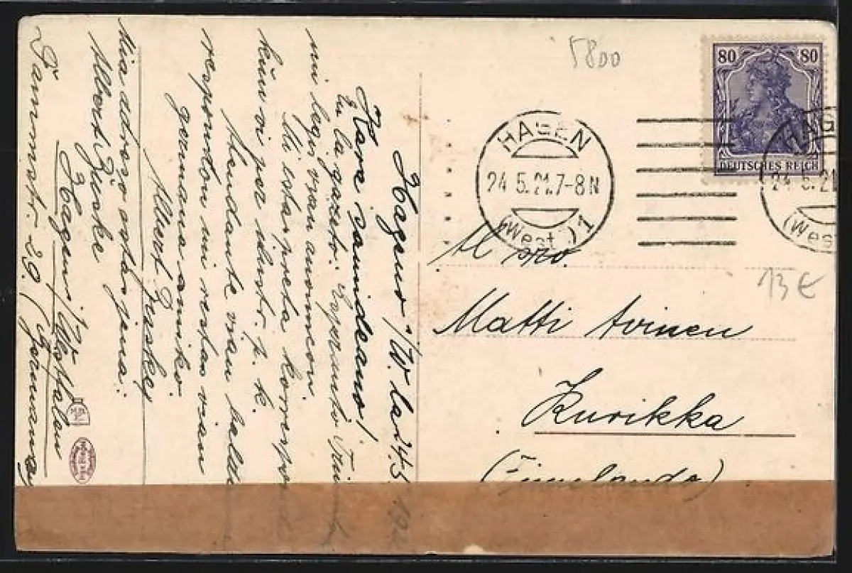 alte Ansichtskarte, gelaufen 1921, rückseitig Klebe- und Papierreste, Eckknicke oben, Stempelspur, guter Zustand
