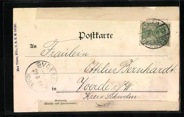 alte Ansichtskarte, gelaufen 1901, rückseitig Klebe- und Papierreste, Abriebspur unten mittig, guter Zustand