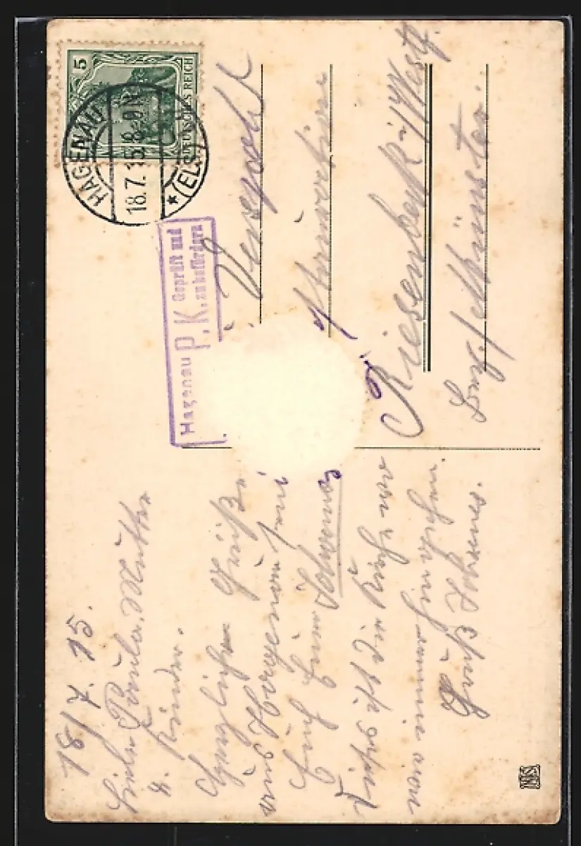 gelaufen 1915, rückseitig Oberflächenschaden, guter Zustand