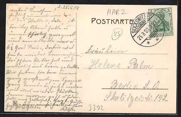 gelaufen 1908, rückseitig Klebe- und Papierreste, guter Zustand