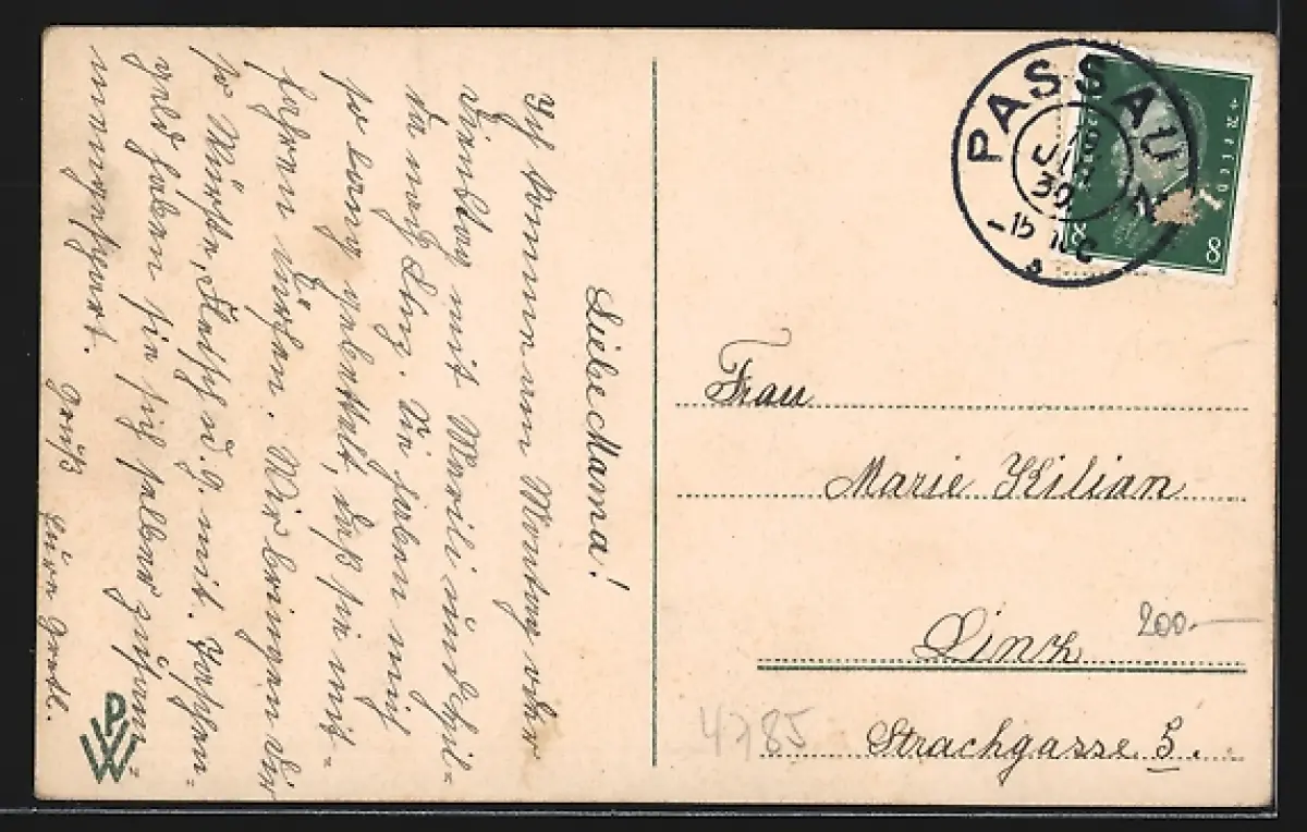 gelaufen 1930, rückseitig Klebe- und Papierreste, guter Zustand