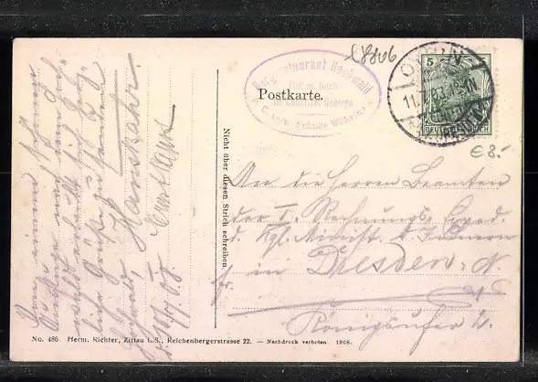 alte Ansichtskarte, gelaufen 1903, Stempelspur, guter Zustand