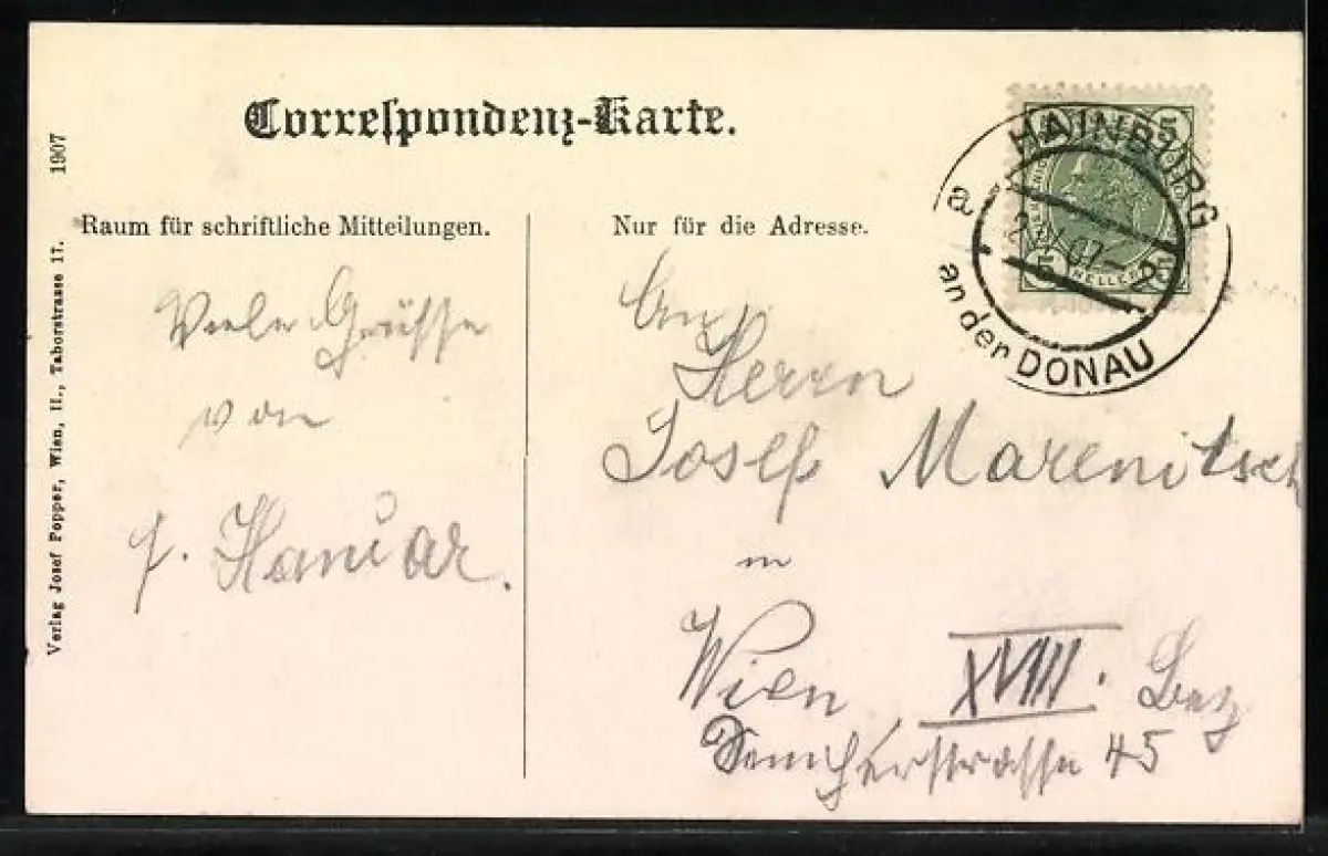 alte Ansichtskarte, gelaufen 1907, Stempelspur, Abriebspuren re., guter Zustand