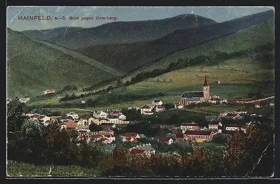 AK Hainfeld /N.-Ö., Ortsansicht gegen den Unterberg
