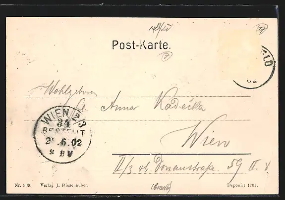 gelaufen 1902, Eckknick unten links, guter Zustand