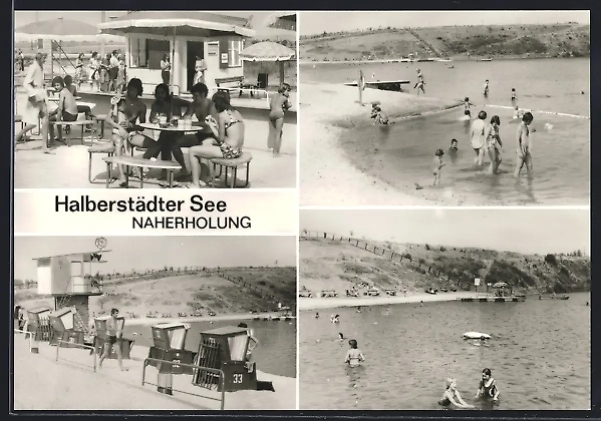 AK Halberstadt, Halberstädter See, Gaststätte, Strand, Badegäste