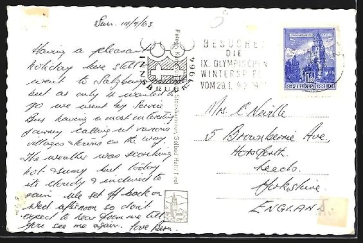 gelaufen 1963, rückseitig Klebe- und Papierreste, guter Zustand