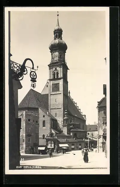 AK Hall /Tirol, Strassenpartie mit Blick zur Kirche
