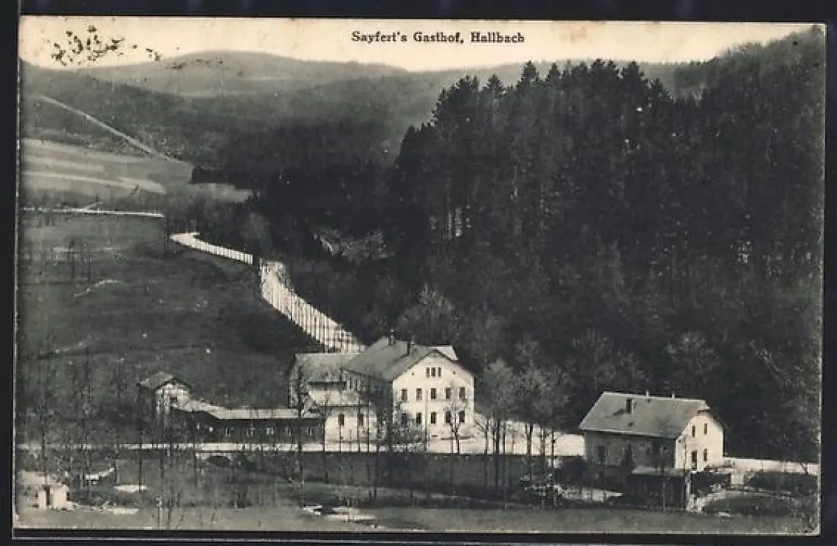 AK Hallbach, Blick auf Seyfert`s Gasthof im Tal