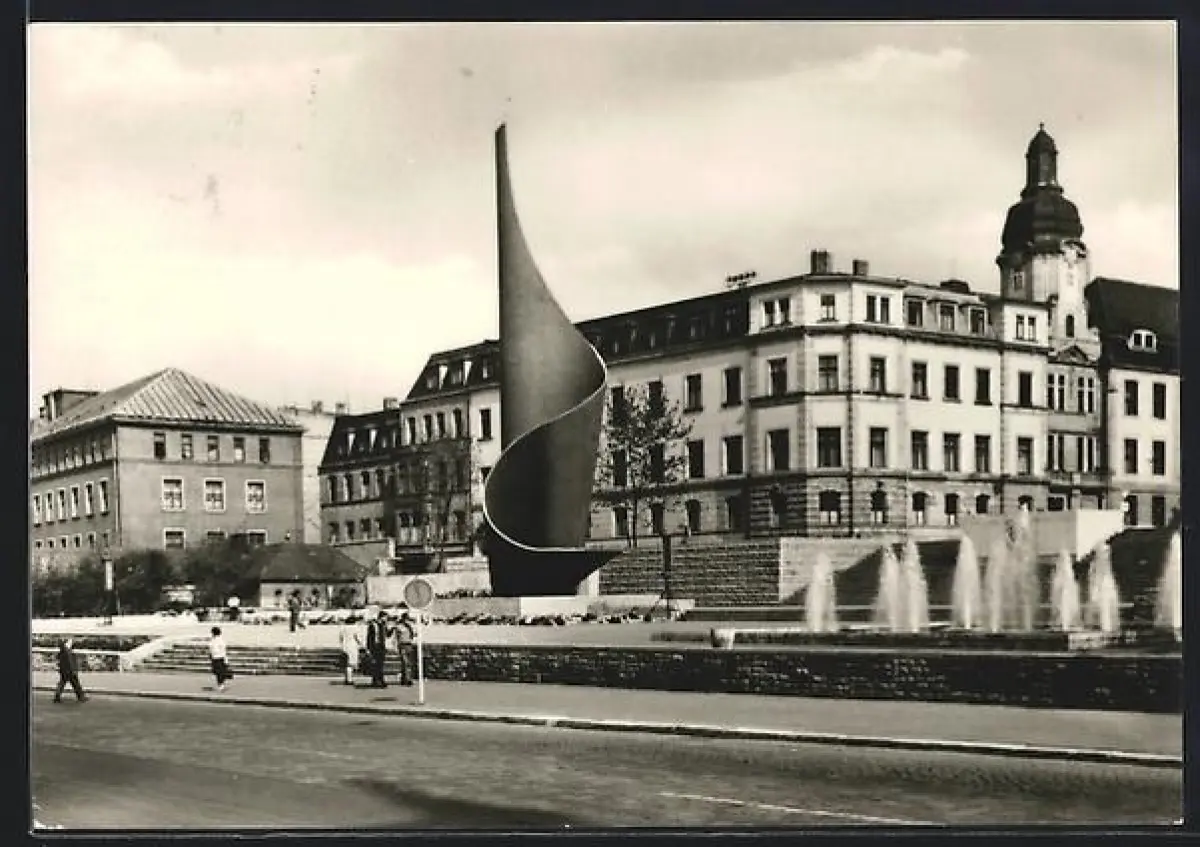 AK Halle /Saale, Fahnenmonument am Hansering Flamme der Revolution