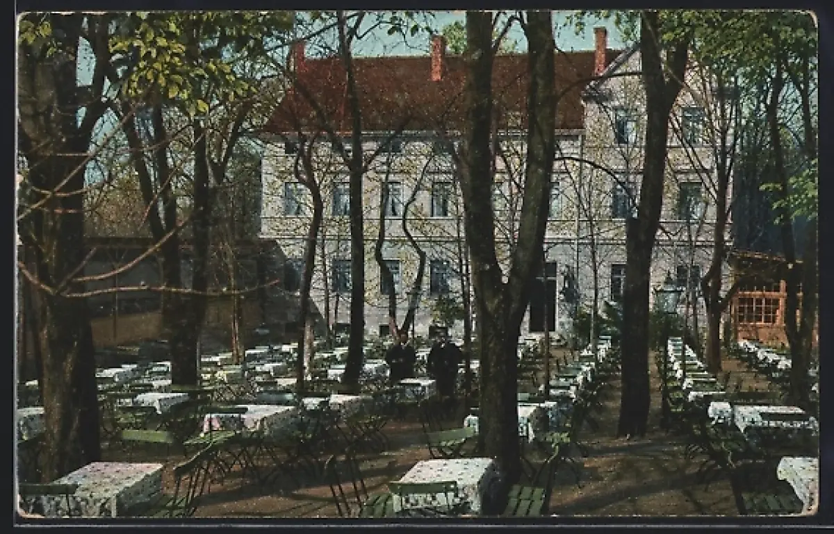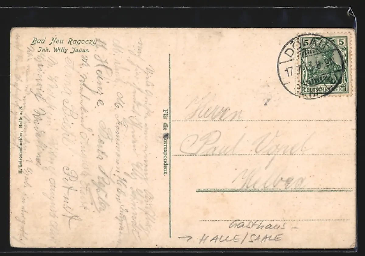AK Halle /Saale, Gasthaus Bad Neu Ragoczy, Inh. Willy Julius, Biergarten